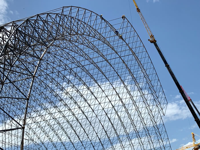 (2)网架加工前应对现场尺寸进行复测,确认无误后方可进行加工、安装;网架制作、运输、安装应遵守《空间网格结构技术规程》JGJ7-2010、《钢网架耒阳螺栓球节点》JG/T 10-2009、《钢网架耒阳螺栓球节点用高强度螺栓》 GB/T 16939-2016、《耒阳钢结构耒阳工程耒阳施工规范》 GB50755-2012、《耒阳钢结构耒阳工程耒阳施工质量验收标准》 GB50205-2020。